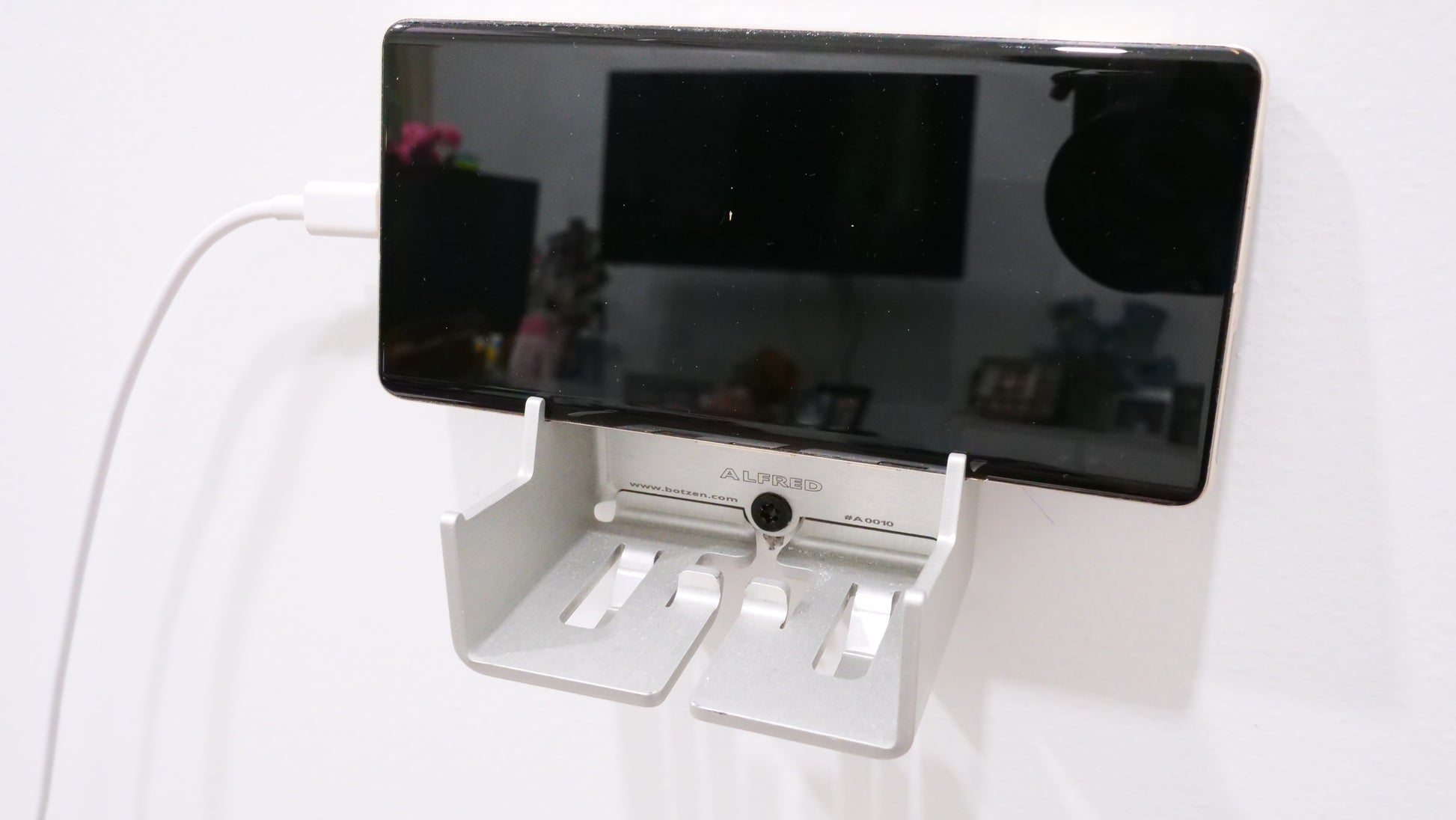 It's versatility is contrasted by its minimal design to help you be more organized and productive. Great as a tablet & cell phone charge station, purse hanger, headphone hanger and holder, thin laptop holder, coat/clothes hanger, key hook holder and cable manager. Great to charger your Phone or tablet while holding your backpack. Comes with stainless steel mounting screws and a Design and Making Sticker!